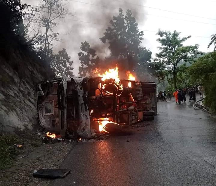 पश्चिमबाट पूर्वतर्फ जाँदै गरेको ना५ख ५१०० नंको बस अनियन्त्रित भई सडकबाट उत्तरतर्फ पहाडमा ठोक्किँएको प्रहरी उपरीक्षक प्रज्ज्वल महर्जनले जानकारी दिनुभयो । आगलागीबाट यात्रु घाइते भएका हुन् । घाइतेमध्ये ६ जनाको अवस्था गम्भीर रहेको महर्जनले बताउनुभयो ।
