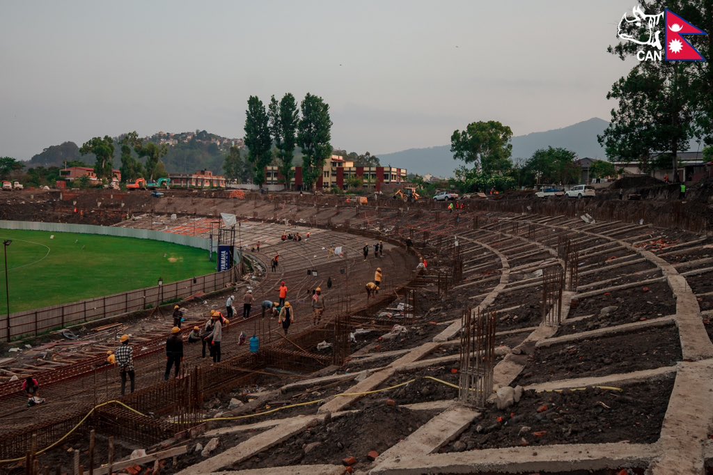 काठमाडौं, ७ जेठ । कीर्तिपुरस्थित क्रिकेट मैदानको काम धमाधम चलिरहेको छ ।