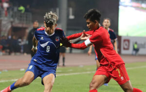 काठमाडौँ । नेपाली राष्ट्रिय महिला फुटबल टिमले अर्को फाइनलमा हार बेहोरेको छ । दशरथ रंगशालामा सम्पन्न अन्तर्राष्ट्रिय महिला च्याम्पियनसिपको फाइनल खेलमा नेपाल म्यान्मारसँग २-० गोल
